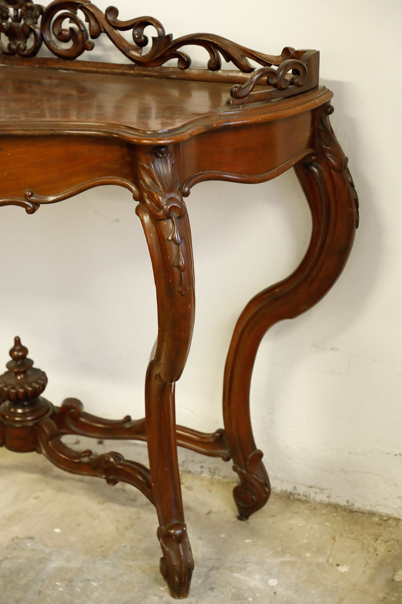 Consolle con cassetto, gambe mosse, intagli vari, Italia, epoca 800.