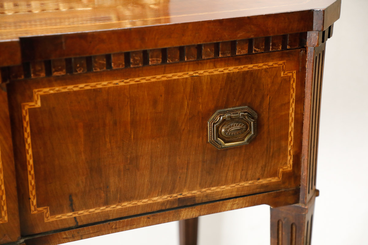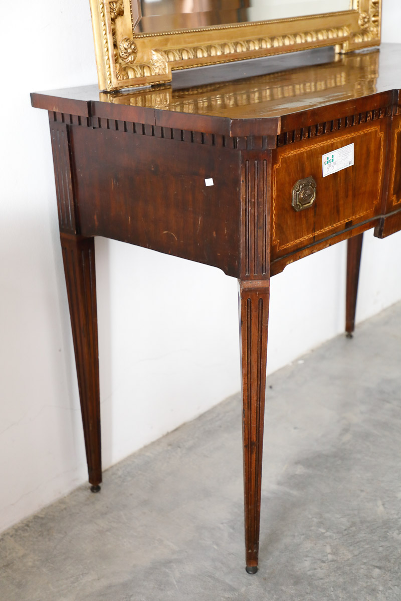 Consolle in noce con cassetti, gamba scanalata intarsi, Inghilterra epoca Vittoriana.
