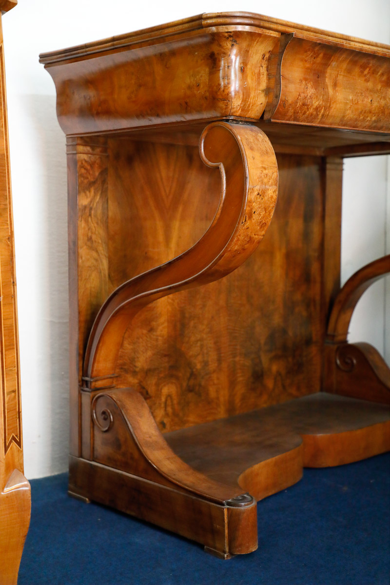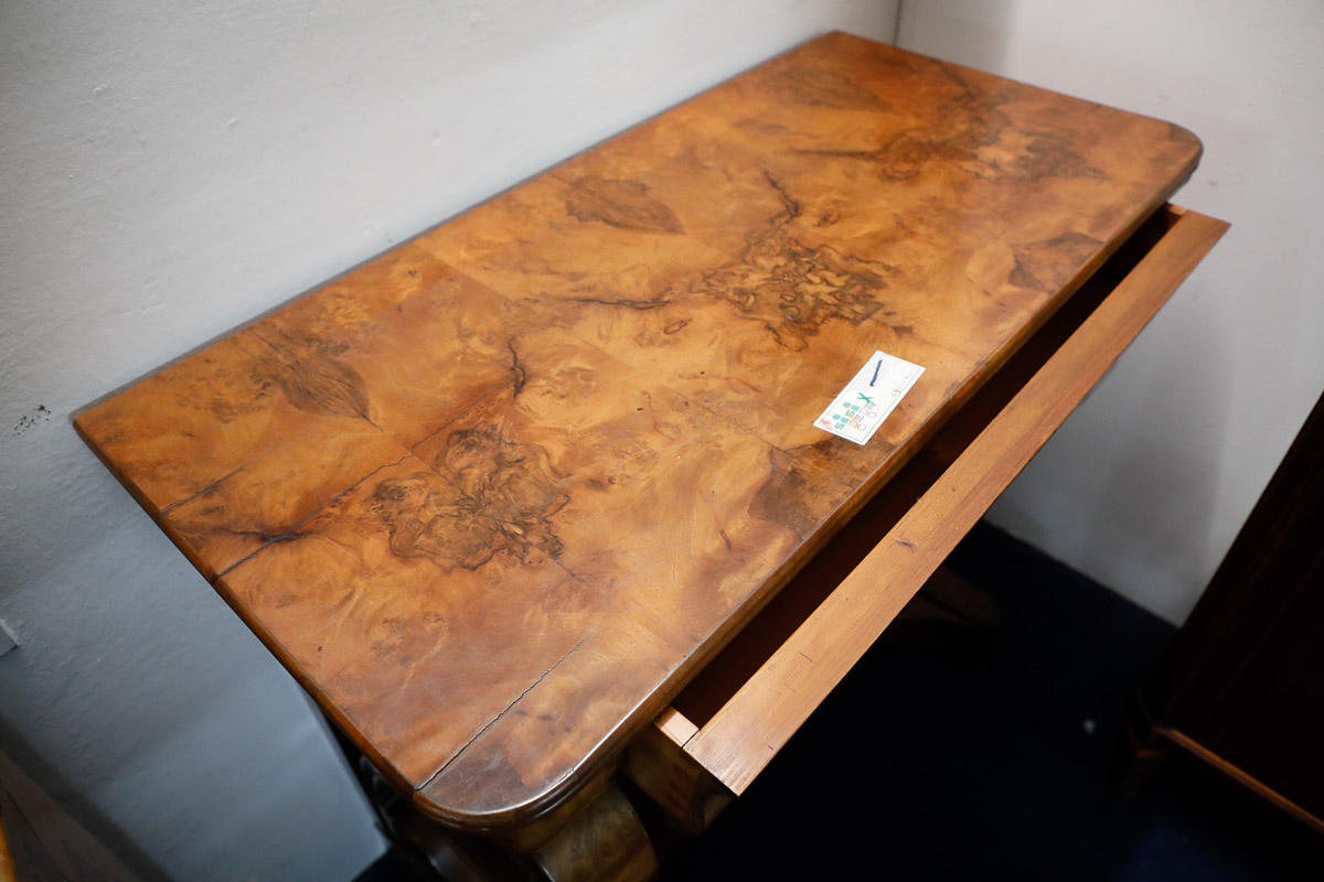 Consolle in radica di noce con cassetto, Origine Italia, Epoca 800.
