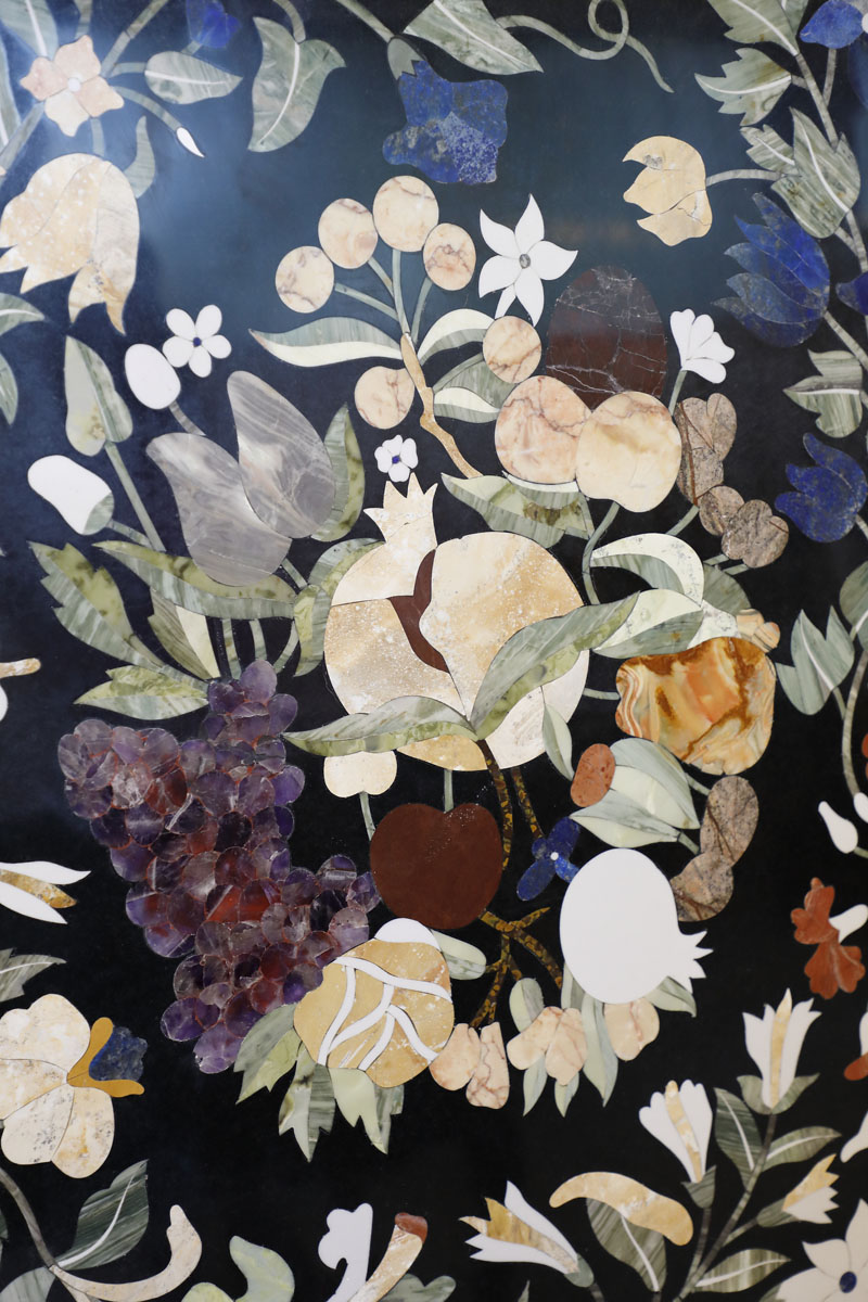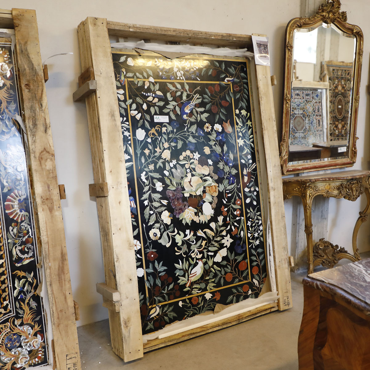 Piano di marmo intarsiato con pietre semipreziose con motivi floreali, 1,80 x 1,20