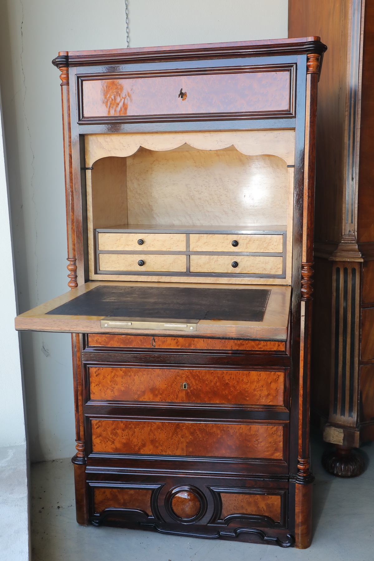 Secretaire in radica di tuja e palissandro contenente una cassaforte firmata Fichet (Paris)