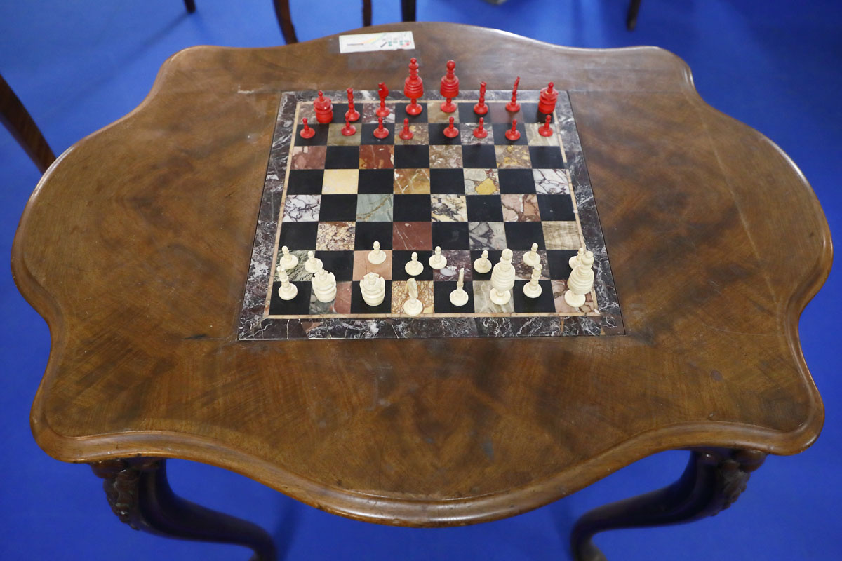 Tavolo a 4 gambe con scacchiera in marmo, Francia