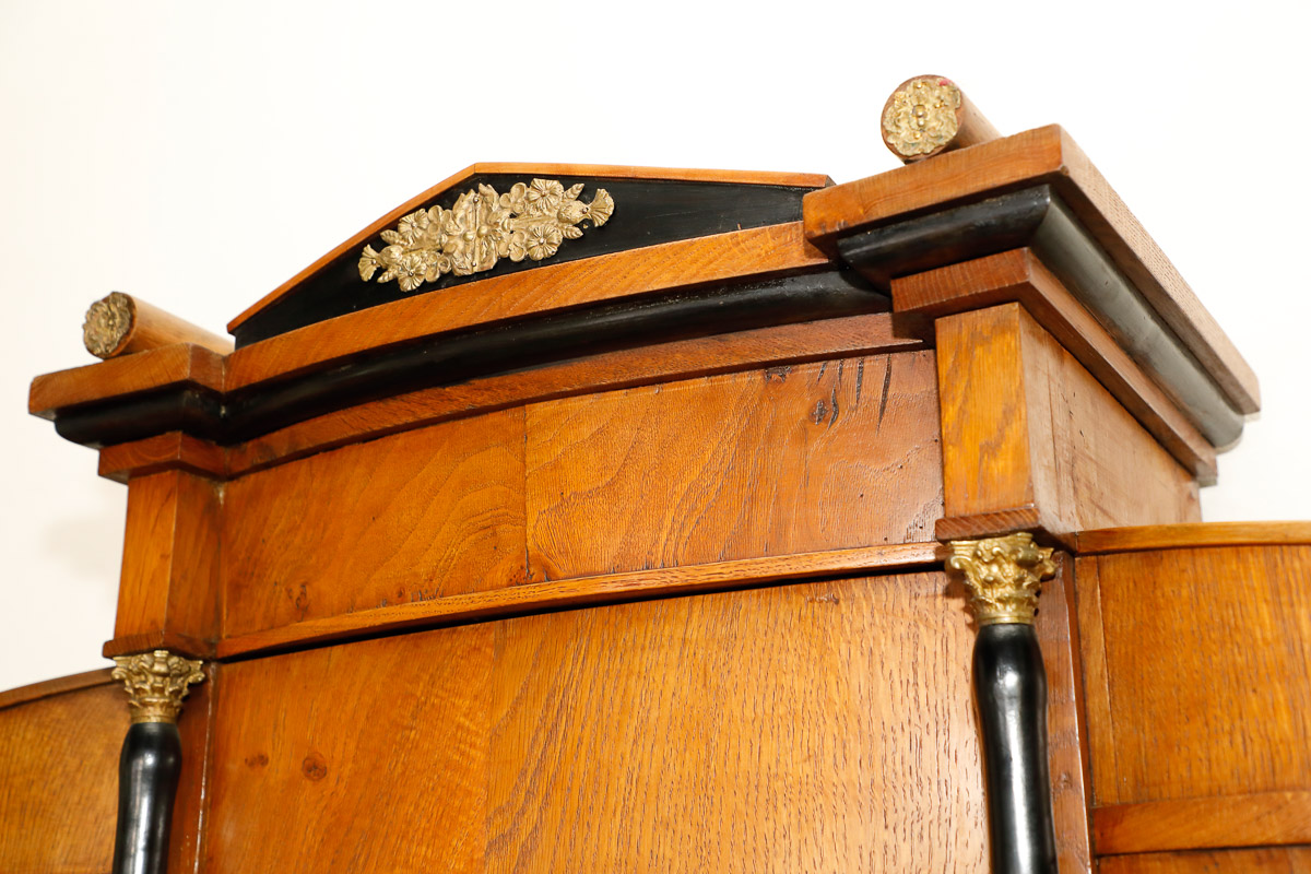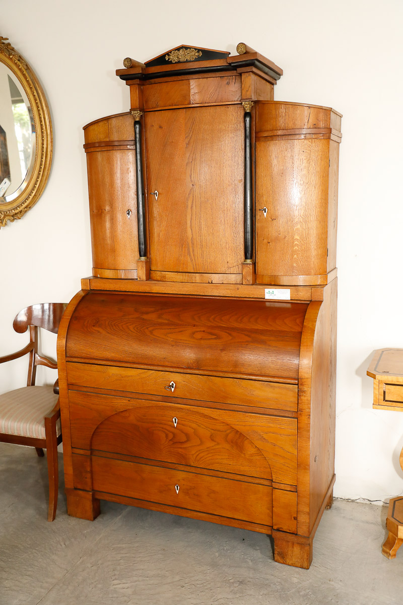 Trumeau in rovere con colonnine ornamentali, scrittoio a rullo, Paesi Scandinavi, Biedermeier.