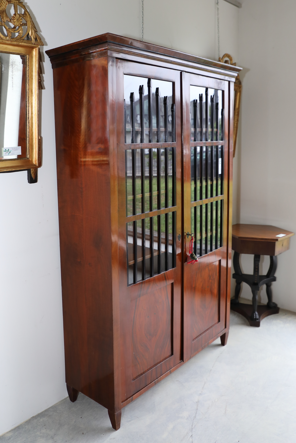 Vetrina /libreria a due ante in noce e radica di noce con elementi ebanizzati