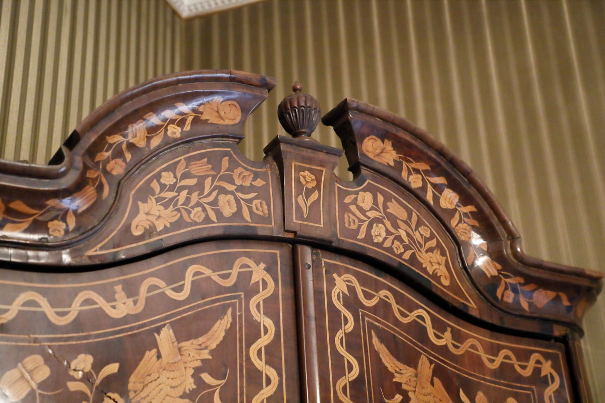 Double body corner cupboard with inlays, 18th century